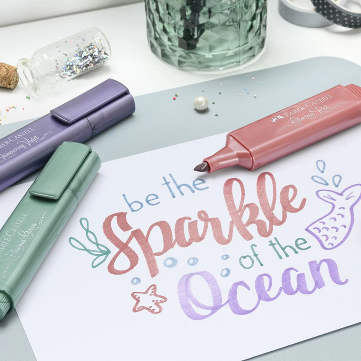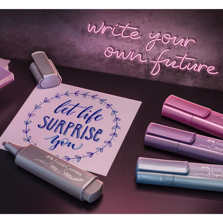 The Textliner 46 metallic with its shimmering ink makes your texts to something special with sparkling effects. Thanks to its long-lasting special tip you can highlight your texts in three different line widths individually and precisely. But not only text passages can be structured with the highlighter but also as a creative marker it can be used in many ways and will provide great effects in your bullet journal. If you illuminate the text it will increase the metallic effect. Be surprised how different light conditions influence the sparkling effects.