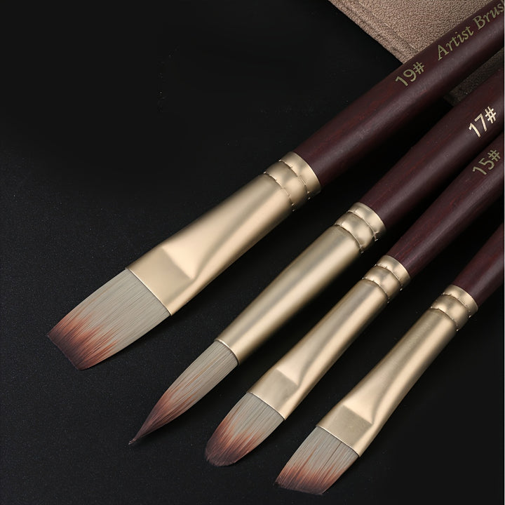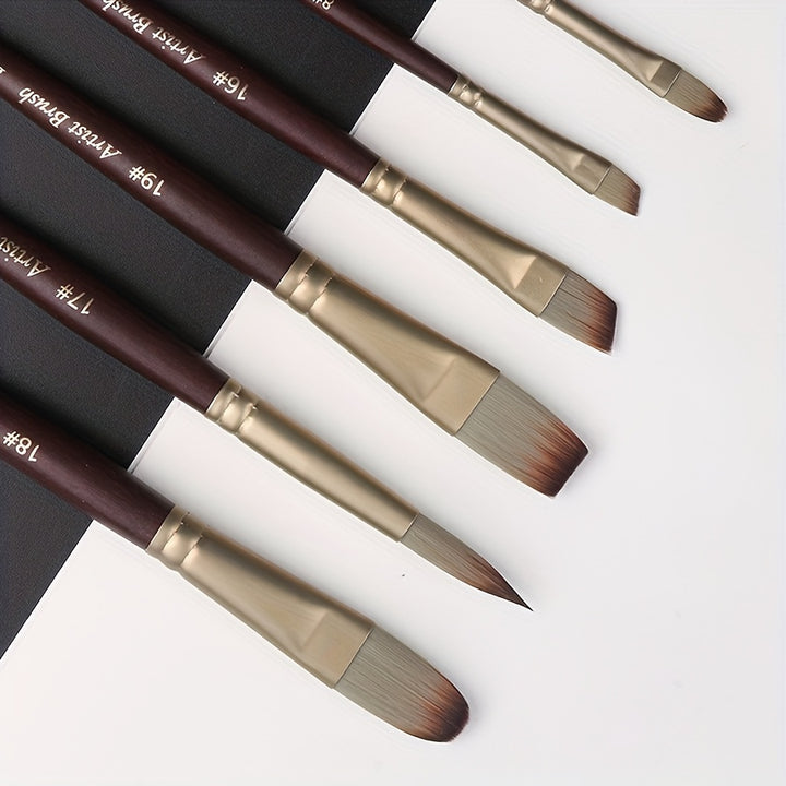 Round, Flat, Filbert, Fan, and Angle brushes in multiple sizes