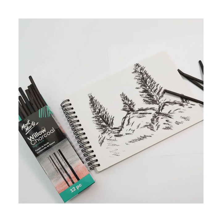 This 12 piece pack contains 4 sticks of small, medium and large diameter width Charcoal. Suitable for all levels of artistic levels. Spray finished work with fixative to avoid smudging, or use tissue paper as a divider when storing art work.