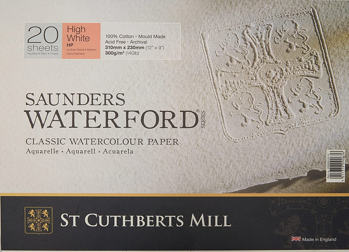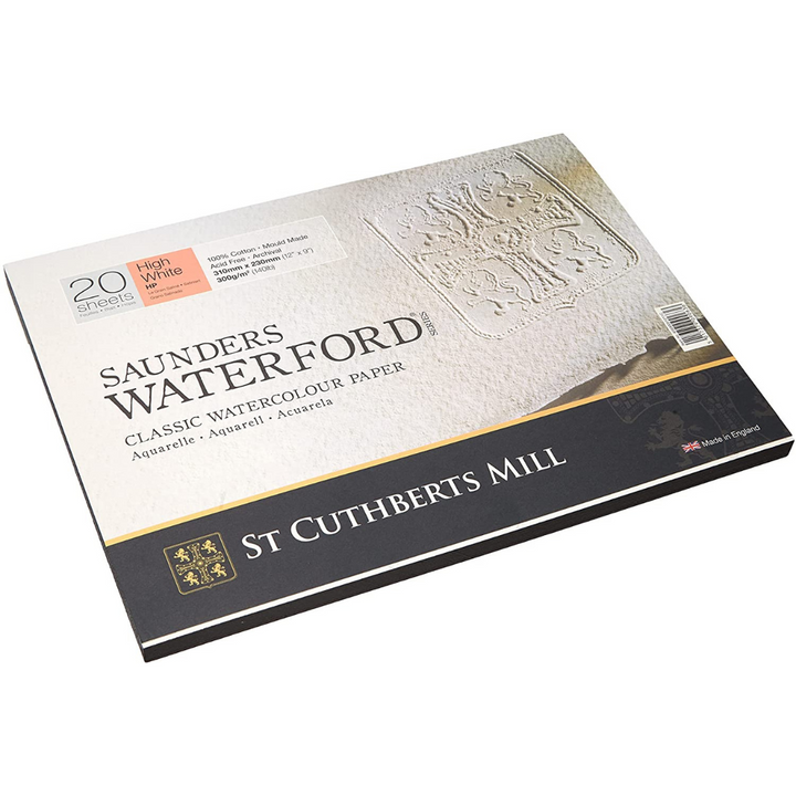 Saunders Waterford sketchbook has exquisite watercolour paper, traditionally made on a cylinder mould machine. Superior quality watercolour paper made by St Cuthberts Mill. Made using 100% cotton, the highest quality papermaking material, to high archival standards.