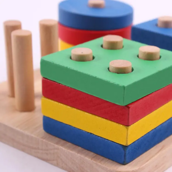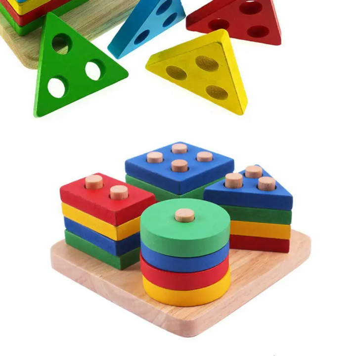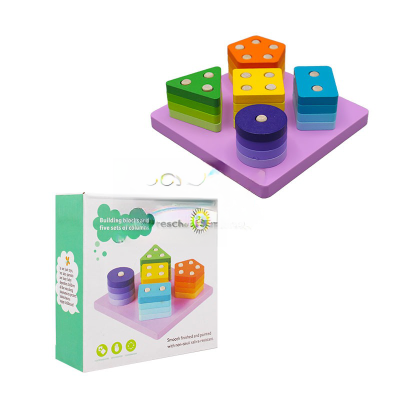Wooden 5 Column Geometric Shapes Pastel Colors Blocks in Box