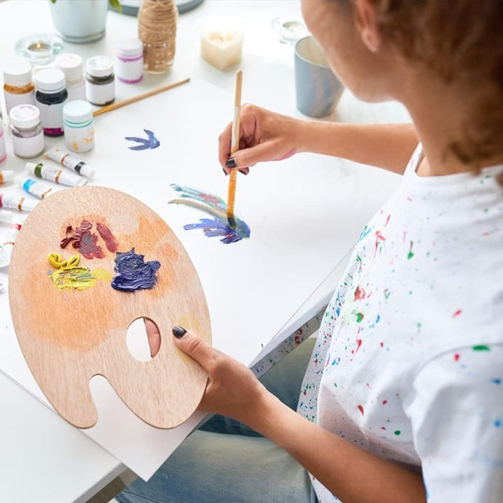 The wooden palette makes it easy to mix paints and is great for acrylic paints, watercolors, varnishes and more. The wooden palette is very useful for painters, artists, craftsmen, amateurs, art students, etc.